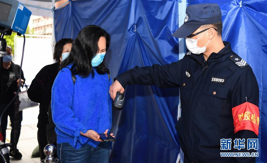3月5日,在广州白马服装市场入口,工作人员扫描入场人员二维码查验信息。 近日,广州市一批专业批发市场在做好疫情防控的同时,开始有序恢复营业。 新华社记者 邓华 摄