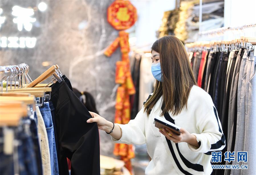 3月5日,在广州白马服装市场,店铺工作人员在清点服装。 近日,广州市一批专业批发市场在做好疫情防控的同时,开始有序恢复营业。 新华社记者 邓华 摄