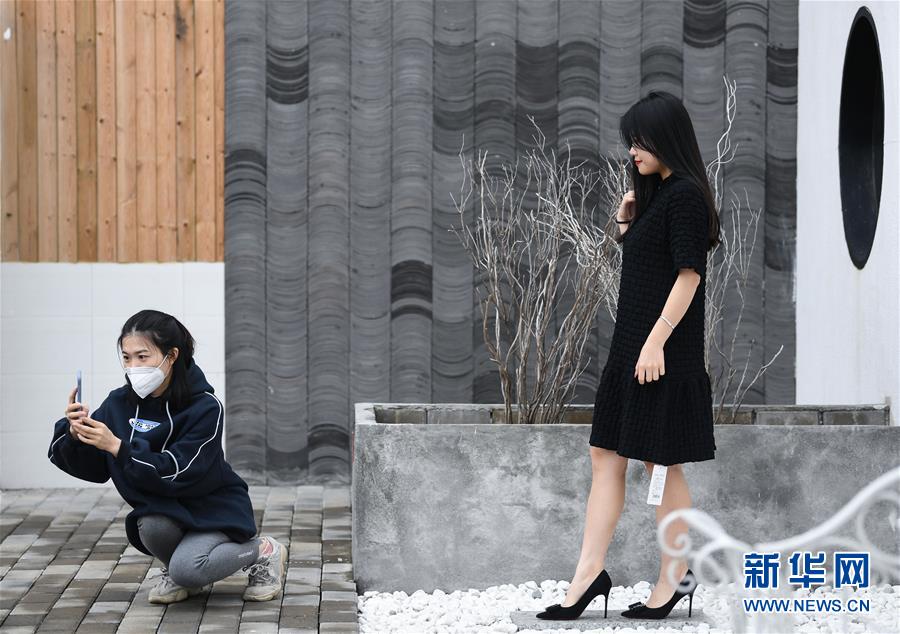3月5日,在广州白马服装市场的摄影基地,店铺模特在拍摄时装照片。 近日,广州市一批专业批发市场在做好疫情防控的同时,开始有序恢复营业。 新华社记者 邓华 摄