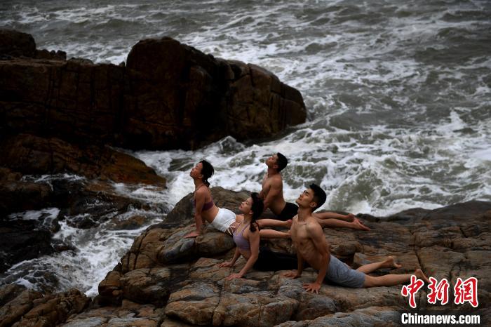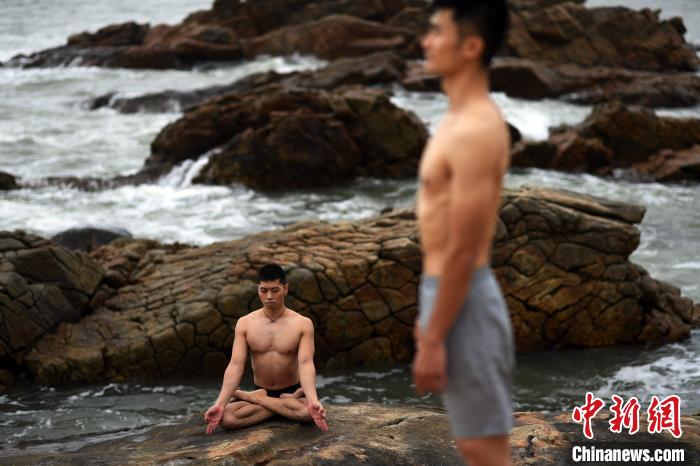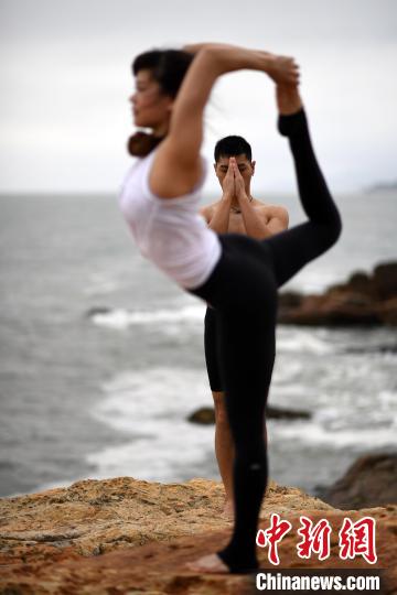 海边瑜伽的练习。 姬东 摄