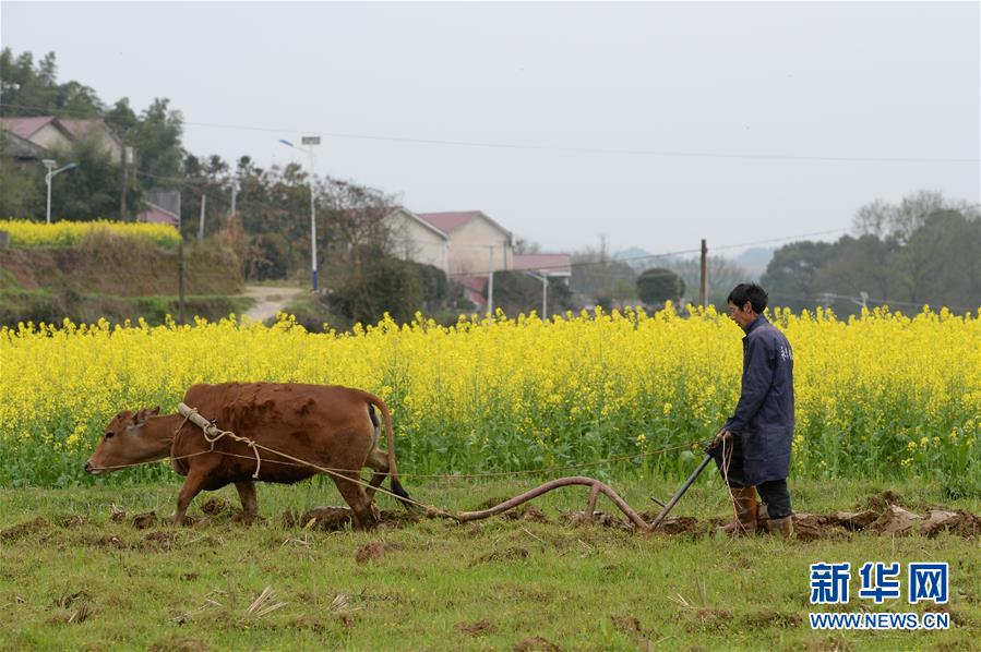 3月5日,在湖南省浏阳市葛家镇玉潭村,村民在犁地。 当日是惊蛰,湖南省各地农民抓住农时,开展农业生产。 新华社发(陈振海 摄)