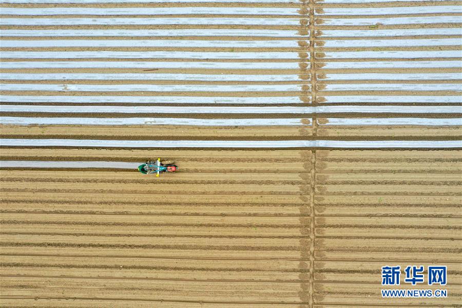 3月5日,在湖南省衡阳市衡阳县关市镇有机蔬菜基地,村民为新种的蔬菜覆膜(无人机照片)。 当日是二十四节气中的惊蛰,各地农民抢抓农时,田间地头呈现繁忙景象。 新华社发(刘欣荣 摄)