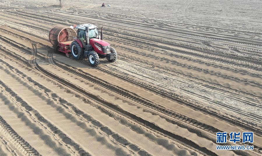 3月5日,河北省南和县三思乡东大村农民在田间收获半夏(无人机照片)。 当日是二十四节气中的惊蛰,各地农民抢抓农时,田间地头呈现繁忙景象。 新华社发(张驰 摄)