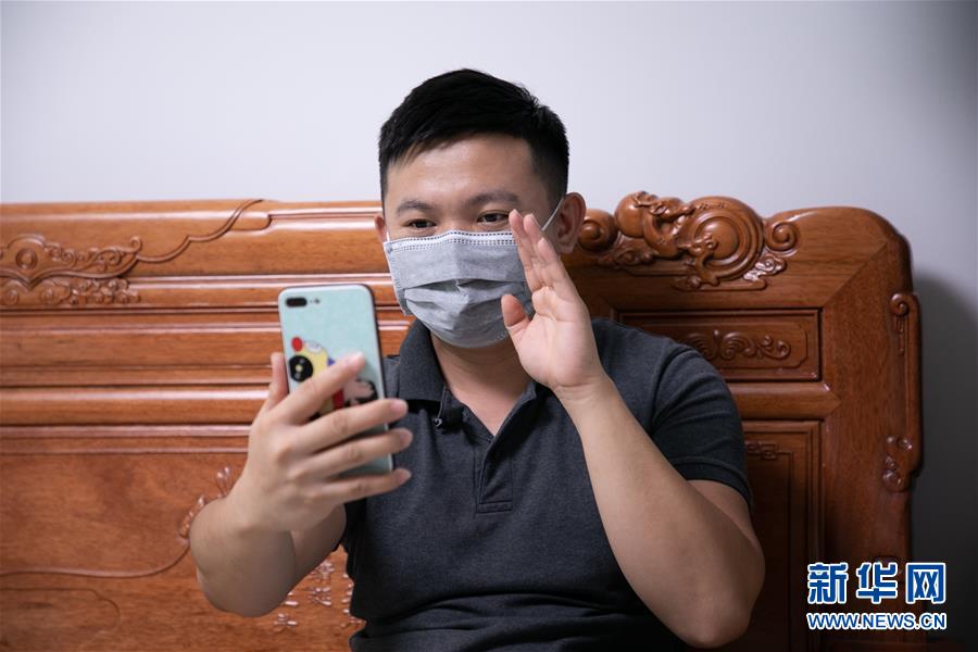 3月4日,廖保丹的弟弟廖保积与姐姐视频通话。 新华社发(张丽芸 摄)
