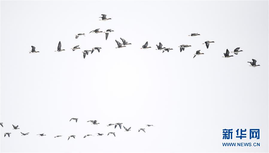 这是在珲春敬信湿地拍摄的候鸟(3月3日摄)。 吉林省珲春市敬信湿地位于中澳、中日两条候鸟迁徙路线交会处。这里江河贯穿,湖泡连片,动植物资源十分丰富,被誉为候鸟迁徙的“五星级驿站”。 为保障候鸟在敬信湿地逗留期间的安全,珲春森林公安局基层民警奋战在护鸟一线,积极加大巡护力度,在风雪天气为候鸟投放粮食,严打猎捕候鸟违法犯罪,确保候鸟迁徙通道安全。 新华社记者 许畅 摄