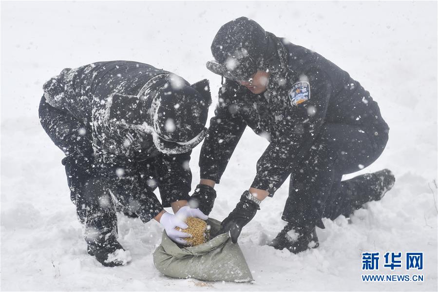 吉林省珲春森林公安局敬信派出所民警在候鸟聚集地区投放粮食(3月4日摄)。 吉林省珲春市敬信湿地位于中澳、中日两条候鸟迁徙路线交会处。这里江河贯穿,湖泡连片,动植物资源十分丰富,被誉为候鸟迁徙的“五星级驿站”。 为保障候鸟在敬信湿地逗留期间的安全,珲春森林公安局基层民警奋战在护鸟一线,积极加大巡护力度,在风雪天气为候鸟投放粮食,严打猎捕候鸟违法犯罪,确保候鸟迁徙通道安全。 新华社记者 许畅 摄