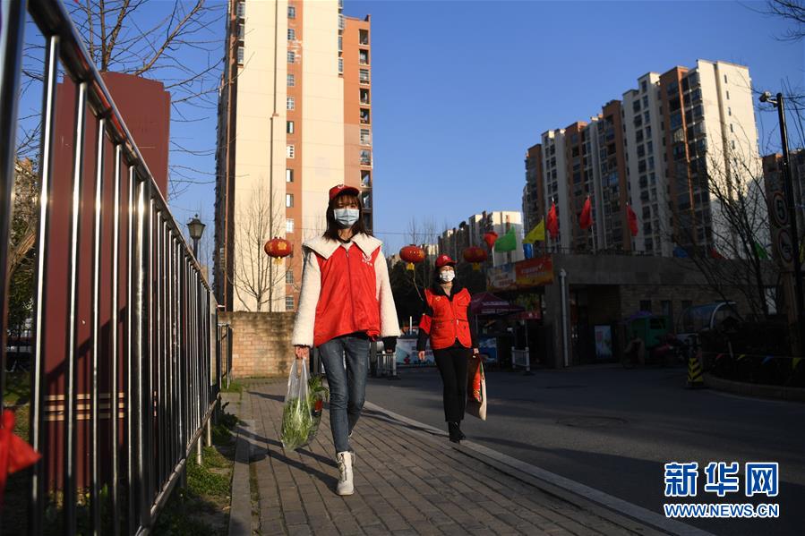 3月5日,王束佳(左)和同伴为行动不便的老人送蔬菜。 18岁的王束佳是一名大学一年级学生,新冠肺炎疫情发生后,王束佳加入合肥市包河区常青街道沿河社区志愿服务队,在社区参与防疫知识宣传、为居民代购、防疫点值守等工作,守护社区居民的平安。 新华社记者 刘军喜 摄