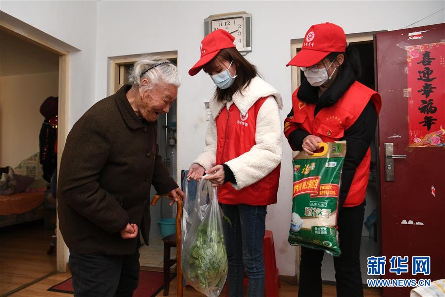 3月5日,王束佳(中)和同伴为行动不便的老人送去蔬菜、大米。 18岁的王束佳是一名大学一年级学生,新冠肺炎疫情发生后,王束佳加入合肥市包河区常青街道沿河社区志愿服务队,在社区参与防疫知识宣传、为居民代购、防疫点值守等工作,守护社区居民的平安。 新华社记者 刘军喜 摄