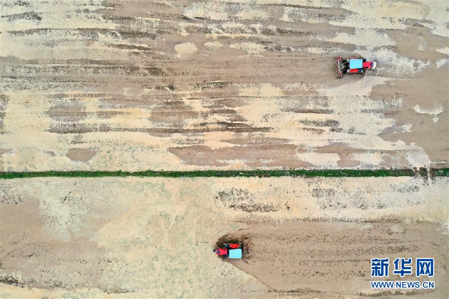 江西省南昌市南昌县蒋巷镇农民驾驶拖拉机进行春耕翻地作业(无人机照片,2月28日摄)。新华社记者 彭昭之 摄