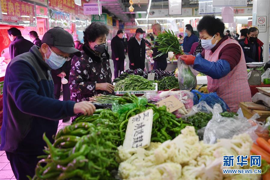 3月6日,市民在兰州市榆中街菜市场买菜。 近日,在严格落实新冠肺炎防控要求的前提下,甘肃省兰州市65家标准化菜市场已全部恢复营业,以保障市民“菜篮子”供应。 新华社记者 陈斌 摄