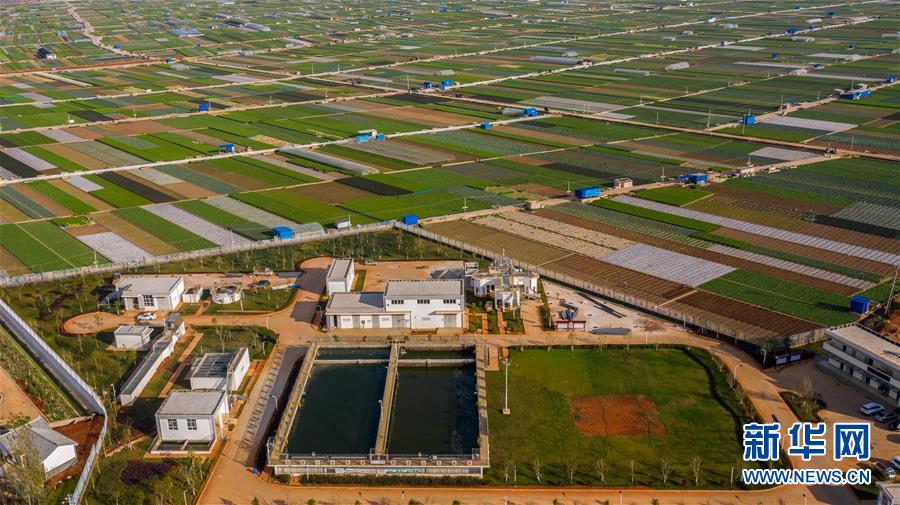 这是2018年12月完工并投入使用的通海县第二污水处理厂(3月4日摄,无人机照片)。 杞麓湖位于云南省玉溪市通海县境内。近年来,为保护杞麓湖生态环境,通海县大力实施环湖截污治污工程建设、污水处理厂及管网配套建设、湖滨生态湿地修复、入湖河道生态治理等措施,水质有所改善。 新华社记者 胡超 摄