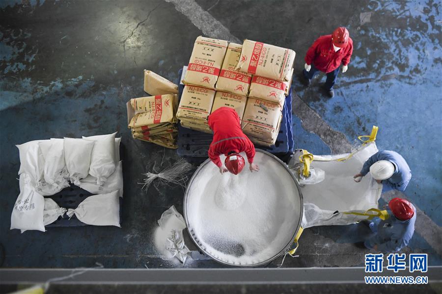 3月6日,在位于重庆市长寿经开区的中国石化重庆川维化工公司,工作人员在聚乙烯醇包装车间内作业。新华社记者 王全超 摄
