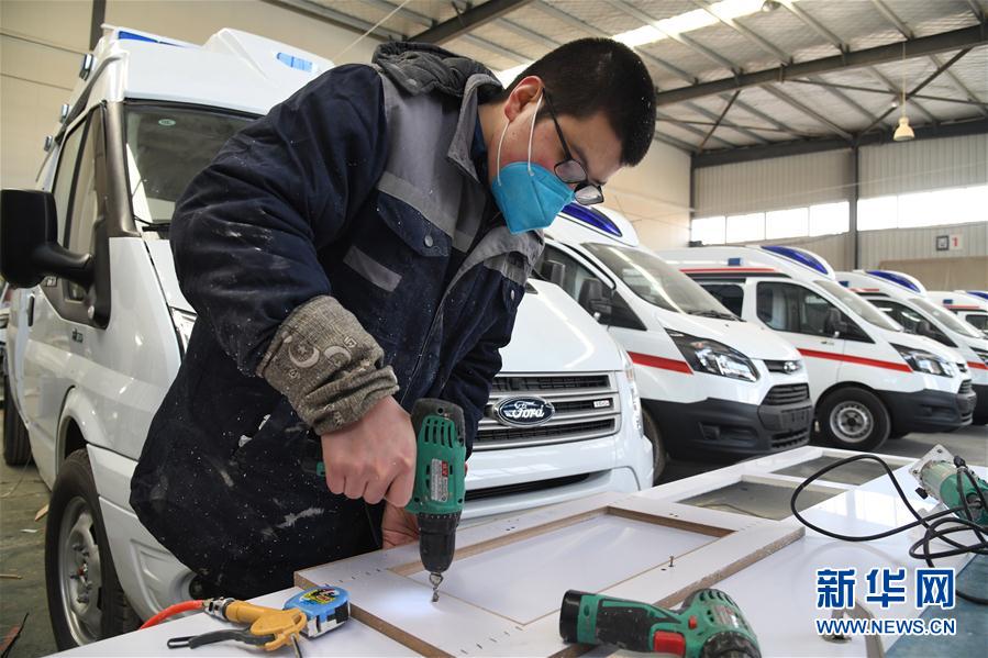青岛索尔汽车有限公司工人在生产车间改装救护车(1月30日摄)。 新华社记者 李紫恒 摄
