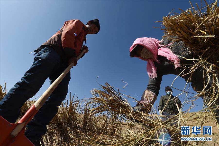 3月6日,在古浪县北部沙区旱麻岗治沙点,八步沙林场第三代治沙人郭玺(左)扎草方格压沙。 近日,甘肃省武威市古浪县八步沙林场治沙人和当地群众共同在腾格里沙漠南缘开展压沙造林。他们计划2020年春季压沙造林7000亩。 2019年3月,中宣部授予甘肃省武威市古浪县八步沙林场“六老汉”三代人治沙造林先进群体“时代楷模”称号。如今,“六老汉”的子孙们传承老一辈治沙精神,坚守八步沙林场,继续保卫家园斗风沙。 新华社记者 范培珅 摄