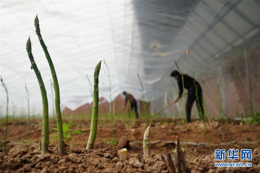3月6日,河北省临城县西竖镇润远农作物种植专业合作社的员工在芦笋种植棚内劳作。 连日来,河北省临城县在做好疫情防控的同时,引导农业科技公司、农业合作社、家庭农场有序复产复工,力保为农民带来良好收益的特色种植业增产增效。 新华社记者 牟宇 摄