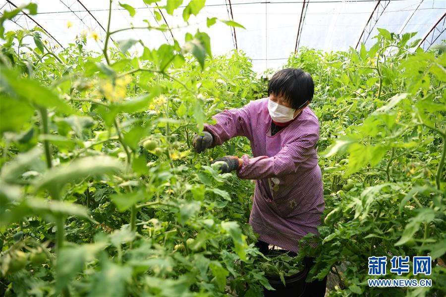 3月6日,河北省临城县古鲁营东村农民在大棚内打理种植的西红柿。 连日来,河北省临城县在做好疫情防控的同时,引导农业科技公司、农业合作社、家庭农场有序复产复工,力保为农民带来良好收益的特色种植业增产增效。 新华社记者 牟宇 摄