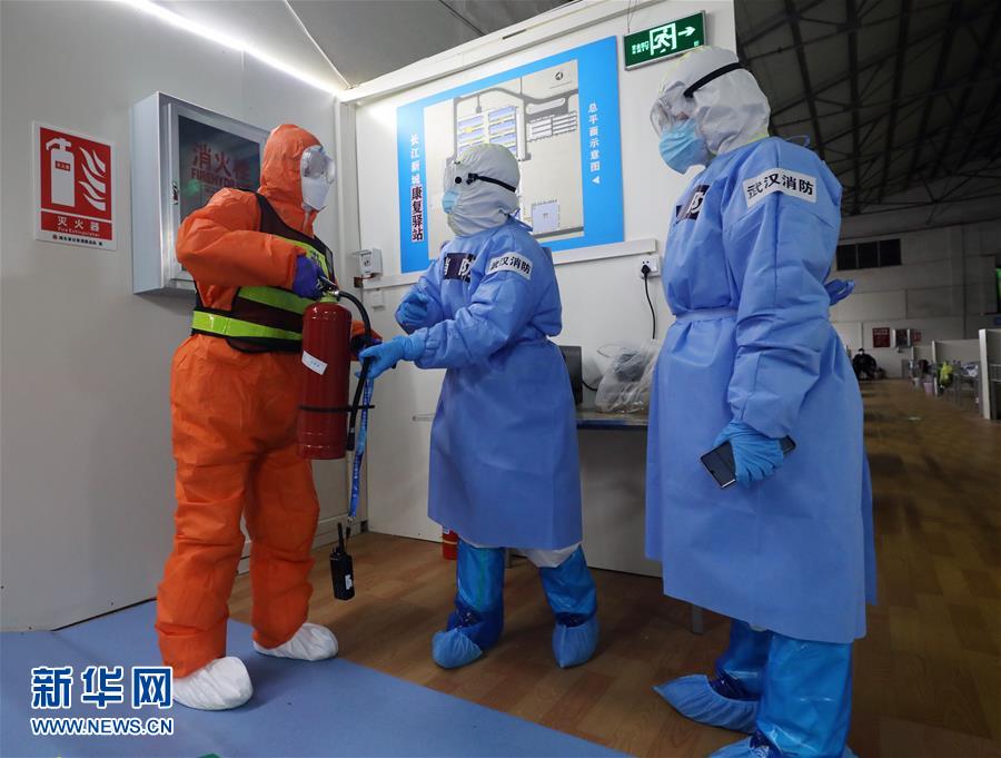 3月7日,在武汉长江新城康复驿站,刘艳红(中)与同事潘婉(右)对现场的消防设备进行检查。 刘艳红是武汉市消防救援支队一名女消防监督员,新冠肺炎疫情发生后,她被派到武汉长江新城康复驿站隔离点,具体负责现场的室内消火栓、灭火器等消防器材设施检查,以及医护人员以及康复隔离人员消防技术指导服务。她说,“事情不论大小、岗位不论轻重,只要是对疫情期间火灾防控工作有益的,都是分内之事。” 新华社记者 肖艺九 摄