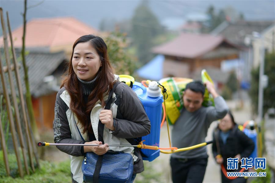 3月7日,在锦屏县河口乡加池村,锦屏县融媒体中心帮扶干部杨晓琴(左)和队友给群众送农用物资。 2019年7月,贵州省黔东南苗族侗族自治州锦屏县融媒体中心与河口乡加池村结成了帮扶对子。加池村距离县城50多公里,是锦屏县的深度贫困村之一。 杨晓琴作为锦屏县融媒体中心的负责人,她吃住在村里,与驻村队员一起谋划脱贫之策。杨晓琴通过多方联系筹集资金,用于整治和美化村庄人居环境,同时带动农户发展魔芋产业600余亩。 新华社记者 杨楹 摄
