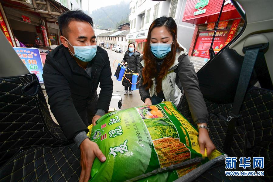 3月7日,锦屏县融媒体中心帮扶干部杨晓琴(右)和队友把送到河口乡加池村的农用物资装车。 2019年7月,贵州省黔东南苗族侗族自治州锦屏县融媒体中心与河口乡加池村结成了帮扶对子。加池村距离县城50多公里,是锦屏县的深度贫困村之一。 杨晓琴作为锦屏县融媒体中心的负责人,她吃住在村里,与驻村队员一起谋划脱贫之策。杨晓琴通过多方联系筹集资金,用于整治和美化村庄人居环境,同时带动农户发展魔芋产业600余亩。 新华社记者 杨楹 摄