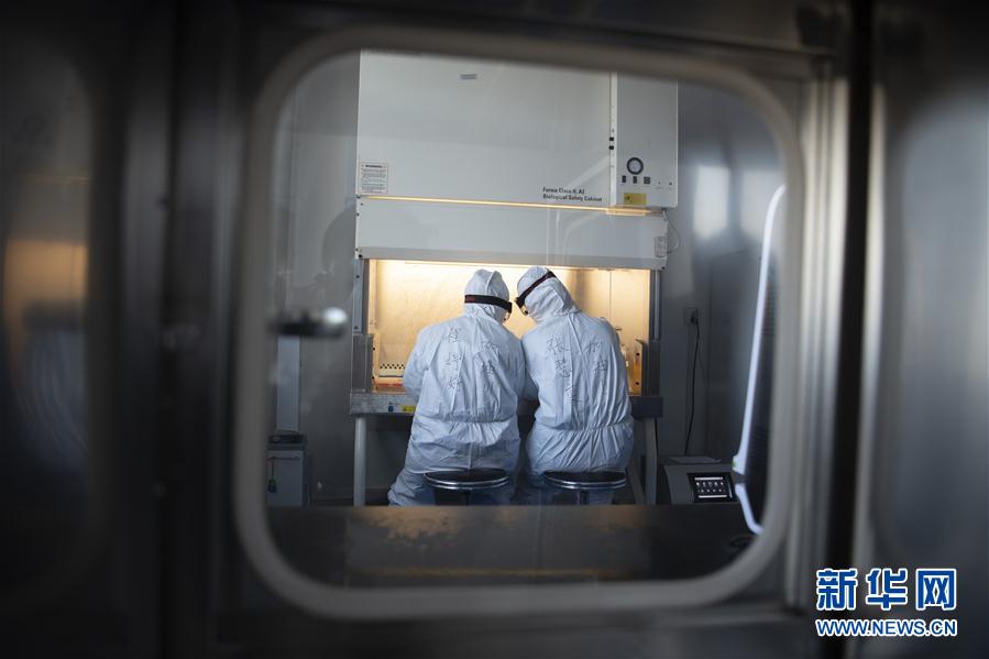 3月3日,张慧变(右)和同事程婷婷在吕梁市疾控中心的核酸提取区内提取病毒核酸。 新华社记者 杨晨光摄