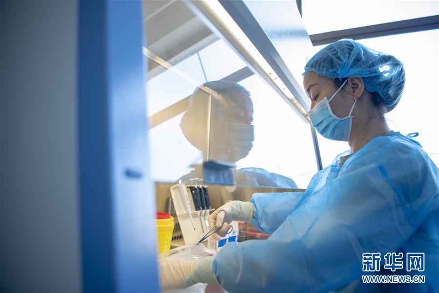 3月3日,张慧变在吕梁市疾控中心的试剂准备区内配置反应体系。 新华社记者 杨晨光摄