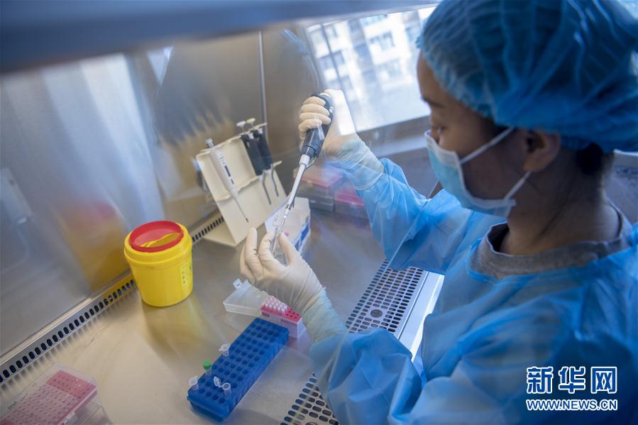 3月3日,张慧变在吕梁市疾控中心的试剂准备区内配置反应体系。 新华社记者 杨晨光摄