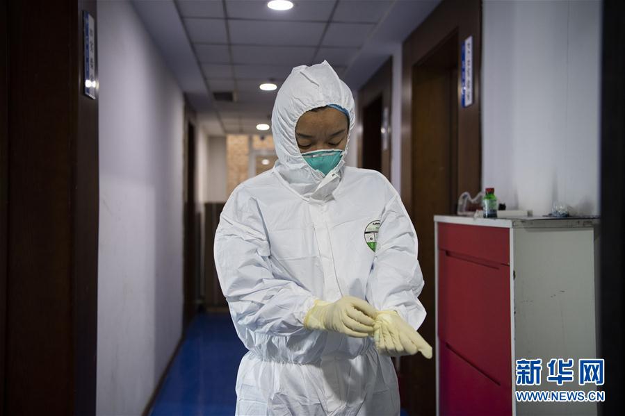 3月3日,张慧变在吕梁市疾控中心的实验室外穿防护服。 新华社记者 杨晨光摄