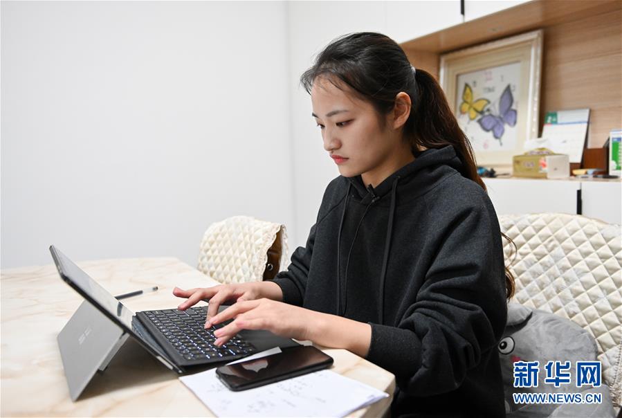 3月4日,郑欣怡在家为山西太原的一名初三学生在线辅导功课。这名学生的妈妈是山西援助湖北医疗队在武汉市优抚医院支援的一名护士。新华社记者陈晔华摄