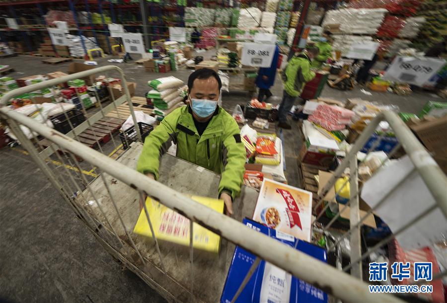 3月7日清晨,武汉送菜员马增辰准备自己当天需要送的货品。 新华社记者费茂华摄