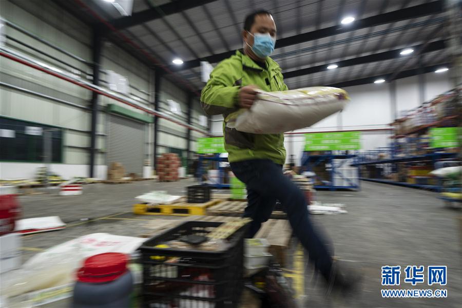 3月7日清晨,武汉送菜员马增辰准备自己当天需要送的货品。 新华社记者费茂华摄