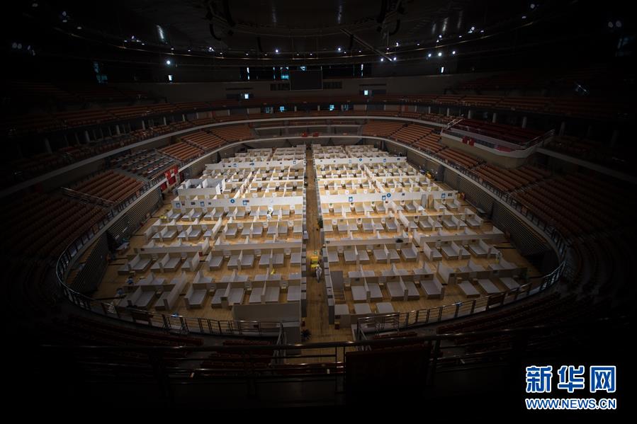 3月8日,休舱后的武汉体育中心方舱医院。 当日,武汉体育中心方舱医院送走最后一批痊愈患者,正式休舱。随后,舱内将进行全面消毒工作。 新华社记者 肖艺九 摄