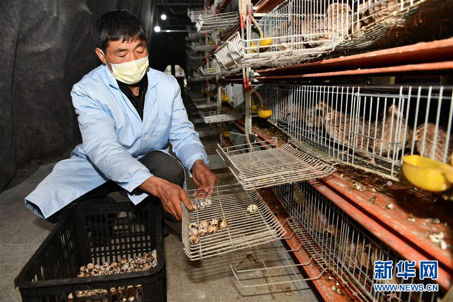 村民在贵州省铜仁市沿河县中界镇高峰村生态养殖场捡拾鹌鹑蛋(2月28日摄)。新华社记者 杨文斌 摄