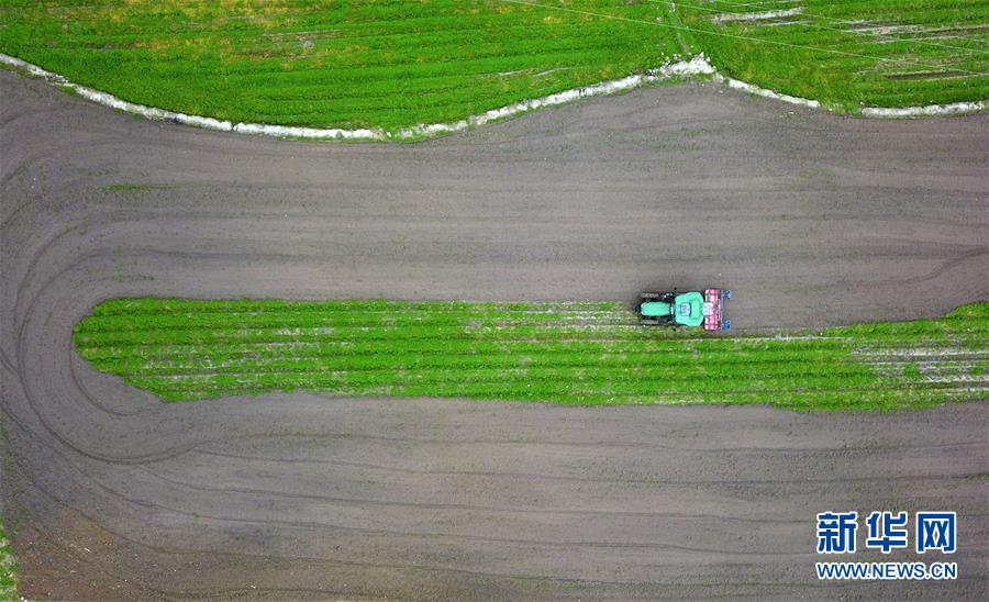村民在贵州省遵义市余庆县白泥镇满溪村的地里驾驶农机耕作(3月1日摄,无人机照片)。 新华社记者 杨文斌 摄
