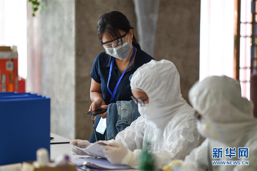 3月8日,心理疏导工作者黄奕彬(左)在海口市琼山区一处医学集中隔离观察点向其他工作人员了解留观人员状况。 近日,记者探访了海南省海口市多处医学集中隔离观察点的心理疏导工作者。他们是海口市卫健委抽调的心理咨询师和心理健康工作者,在各医学集中隔离观察点驻点值班,为留观人员、医护人员等提供心理健康服务,开展必要的心理干预。此外,心理疏导工作者还积极与留观人员和观察点其他工作人员沟通,促进双方相互理解和相关问题解决,助力疫情防控。 新华社发(蒲晓旭 摄)