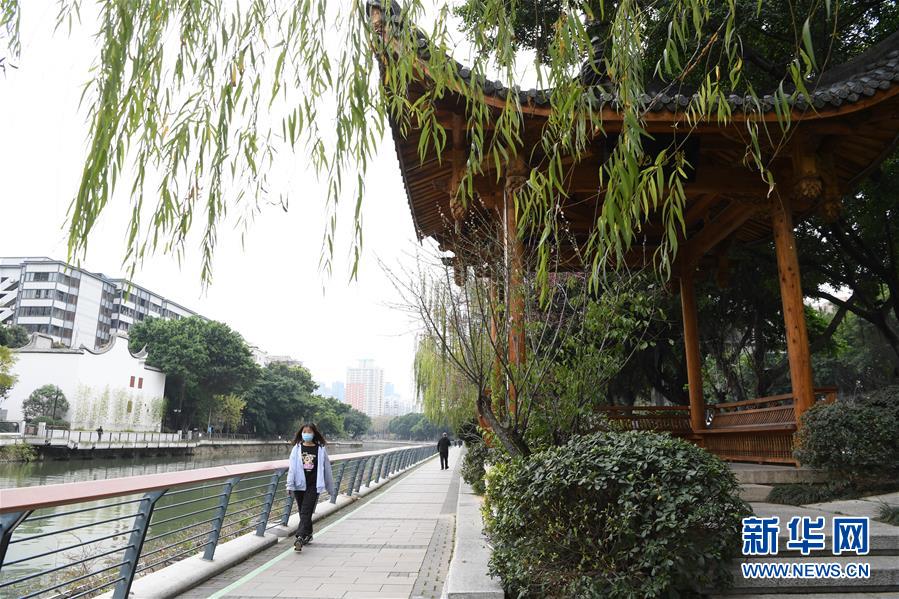 3月6日,市民在古色古香的福州晋安河公园内散步休闲。福州晋安河公园在建设过程中除保留修缮两岸古厝古宅,同时还新建了多处闽派仿古建筑。 新华社记者姜克红摄