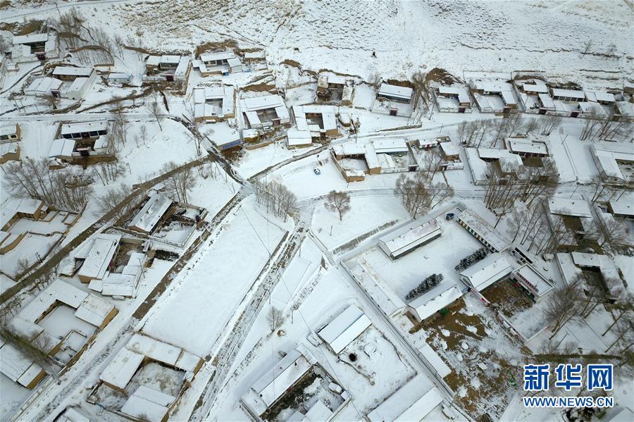 这是3月9日在武威市天祝藏族自治县境内拍摄的乌鞘岭脚下村庄(无人机照片)。 近日,受冷空气影响,位于甘肃省武威市天祝藏族自治县境内的祁连山支脉乌鞘岭迎来降雪天气,春雪覆盖下的乌鞘岭云雾缭绕,银装素裹,宛如一幅美丽的画卷。 新华社记者 范培珅 摄