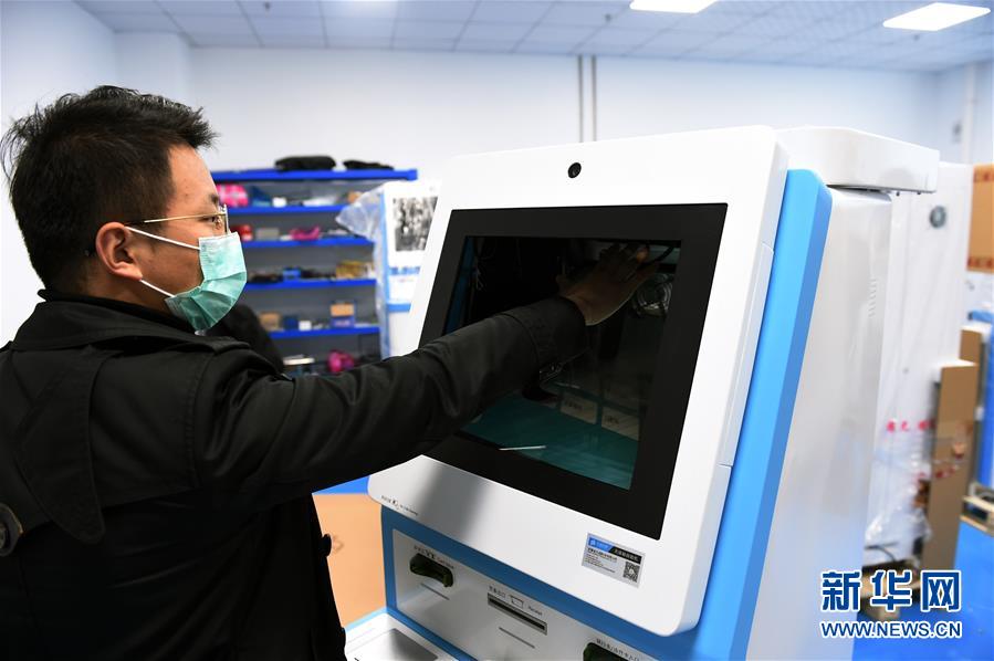 3月9日,在安徽东超科技有限公司,工作人员调试“无接触自助机”。 新冠肺炎疫情发生后,为降低公共场所接触性交叉感染的几率,合肥市多家医院及办公场所投入使用“无接触自助机”和“无接触电梯按钮”。 这些设备利用“可交互全息空气成像”技术,将自助机操作界面和电梯按钮以实像形式呈现在空气中,并实现交互操作。使用者不用接触屏幕,在空气中完成所有操作。 新华社发(周牧 摄)