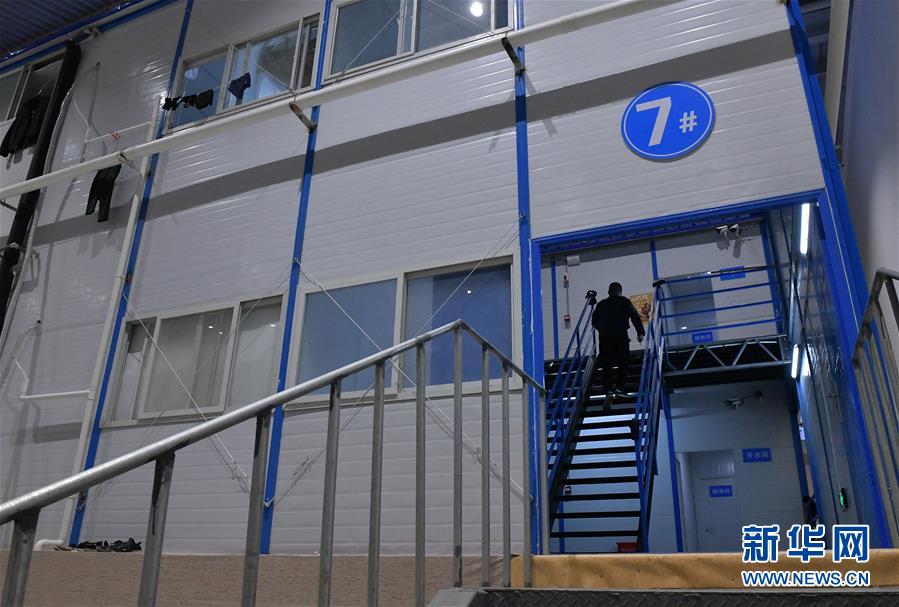 完成转运任务的李华返回雷神山医院附近的简易宿舍(3月7日摄)。 新华社记者李贺摄