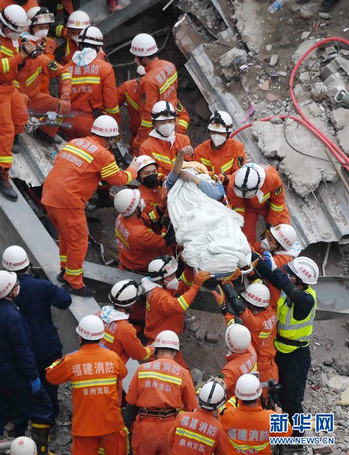 3月10日,泉州酒店坍塌事故幸存者游绍峰在被困69小时后获救。 新华社记者 林善传 摄