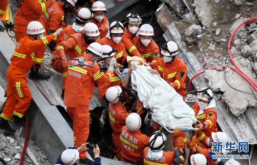3月10日,泉州酒店坍塌事故幸存者游绍峰在被困69小时后获救。 新华社记者 林善传 摄