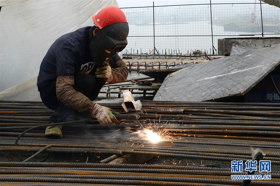 3月10日,工人在亚父路跨裕溪河大桥建设工地施工。 近日,安徽省巢湖市重点工程——亚父路跨裕溪河大桥建设工程有序复工。工作人员在做好疫情防控的同时,保障工程有序推进。 据了解,跨裕溪河大桥距离合龙仅剩15米,预计今年5月初实现主桥合龙,7月中旬建成通车。 新华社发(黄博涵 摄)