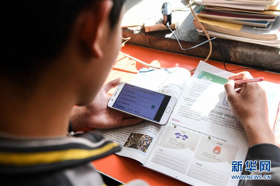 3月10日,刘进才在家中上网课。 新华社记者 刘磊 摄