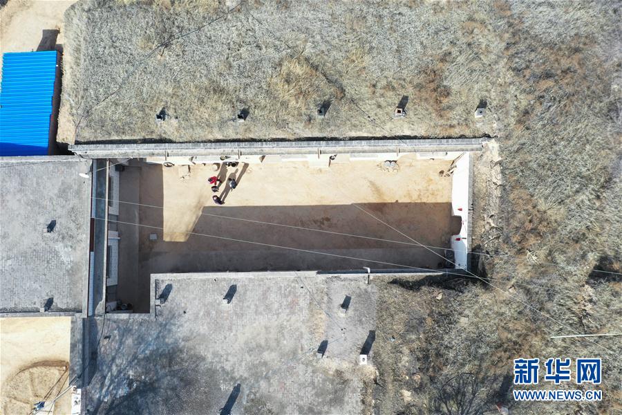 3月10日,上完一节网课的刘进才和家人在自家院内聊天休憩(无人机照片)。 新华社记者 徐钦 摄