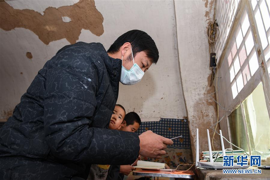 3月10日,当地移动公司的工作人员再次来到刘进才家中,检测网络速度。 新华社记者 刘磊 摄