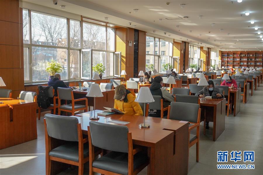 3月11日,市民在长春市图书馆阅览室读书。 当日,根据长春市复工复产的相关安排,长春市图书馆进入复工开馆初级阶段。图书馆实施读者限时限流预约进馆制度,读者需配戴口罩从图书馆主楼正门进入,并接受两次体温测量。 新华社记者 张楠 摄