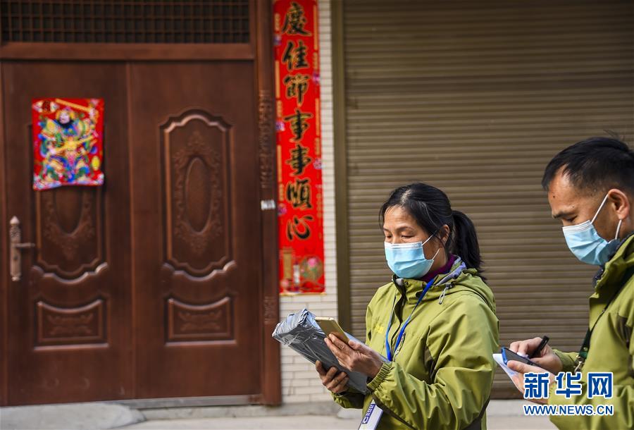 邮递员高先蓉(左)在孝感市孝南区卧龙乡为学生派送学习资料时等候取件(3月10日摄)。 新华社记者 胡虎虎 摄