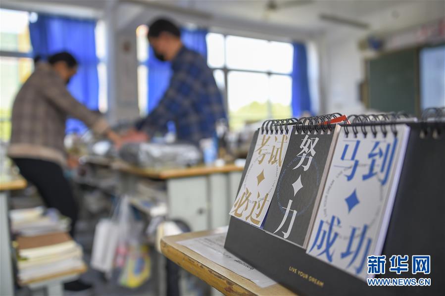 在湖北省孝感一中,两位老师在教室按学生需求整理学习资料(3月10日摄)。 新华社记者 胡虎虎 摄