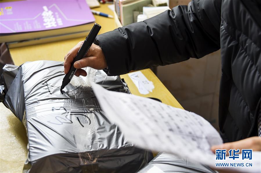 孝感一中的老师对照教室学生座位表,在学习资料包上写名字(3月10日摄)。 新华社记者 胡虎虎 摄
