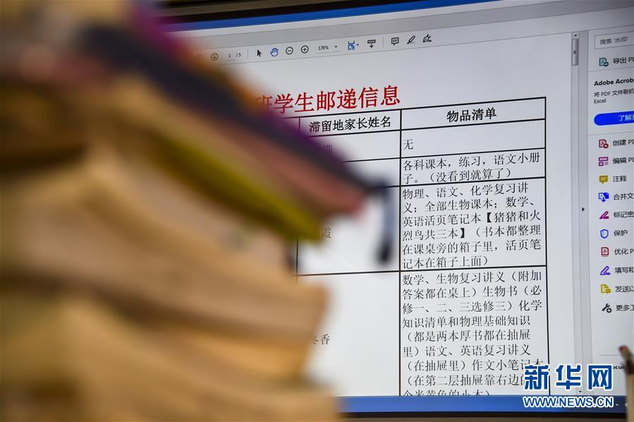孝感一中高三年级教室的电子大屏上滚动显示学生邮递信息,老师们可按物品清单仔细整理(3月10日摄)。 新华社记者 胡虎虎 摄