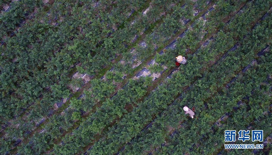 3月11日,白沙黎族自治县牙叉镇对俄村村民在田里采摘朝天椒(无人机照片)。新华社记者 杨冠宇 摄